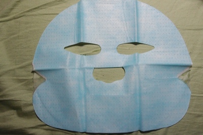 另一款面膜紙材質是羽絲縷,同樣也是三層面膜,不同的是這款的上層是藍色紙。