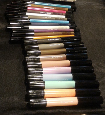 桌上擺放了這次體驗會的產品:3秒魔法全能眼線膠筆、新一代超精準流線筆、炫彩絲滑眼線筆、炫彩絲滑眼彩筆。