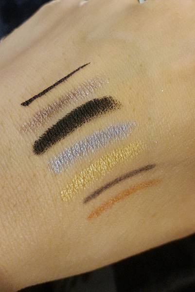 我本人實在是個患有眼妝配色障礙的,就只挑了幾支喜歡顏色的筆在手上試色,其中最有興趣的是一代超精準流線筆,粗、細都很好畫,且也不會暈開。