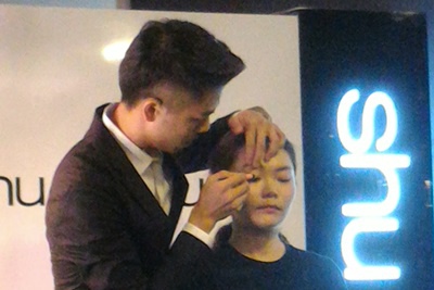 第二款妝容則是較偏派對妝,素人模特兒有著大內雙的眼睛,彩妝 師Anton利用崔咪示範的顏色來為模特兒上妝。化了妝的眼神果然變得較銳利點。