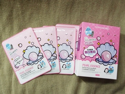 打開珍珠精華嫩白面膜有三層,先將白色的珍珠膜撕除,再將中間的面膜紙平敷在臉上,接著再將最上層的藍色不織布面膜撕除,小心的調整面膜至最佳的位置。