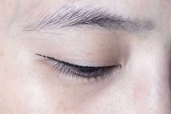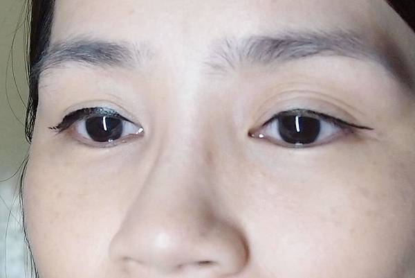 左眼這是經過一天後的樣子,只有薄薄的粉底就直接上眼線,對於出油的眼皮來說很抗油!
