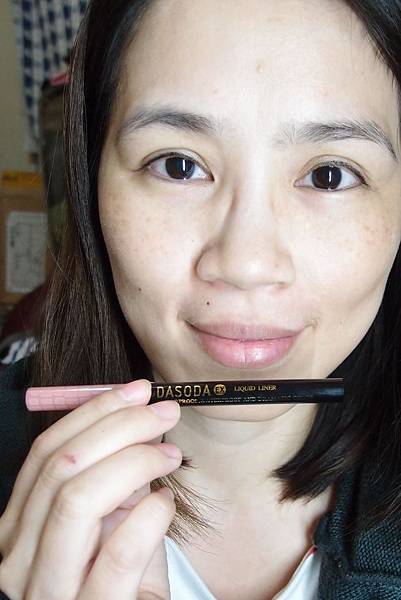 平時的化妝在眼妝部份都要花費較多的時間,不是化的很仔細,而是太不會化了才要較久的時間!尤其是我的眼皮很容易出油,以現在眼妝品的技術已可以不用擔心會過敏的問題,但容易出油、脫妝就很難避免。而這支DASODA EX系列進化版的眼線液筆,除了筆尖是我喜愛的極細(0.1mm),還有能一筆速乾,迅速的化出完整的線條。