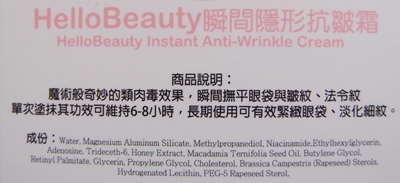 【Hello Beauty 瞬間隱形抗皺霜】北市衛妝廣字第105020333號