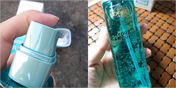 按壓出來的原以為會是像凝露般,但其實質地是較偏水狀的凝露,這款保濕精華露的流動性高,輕拍至肌膚吸收後肌膚是清爽又不黏膩,而高濃度的玻尿酸能滲透肌底,為肌膚做好密集補水。